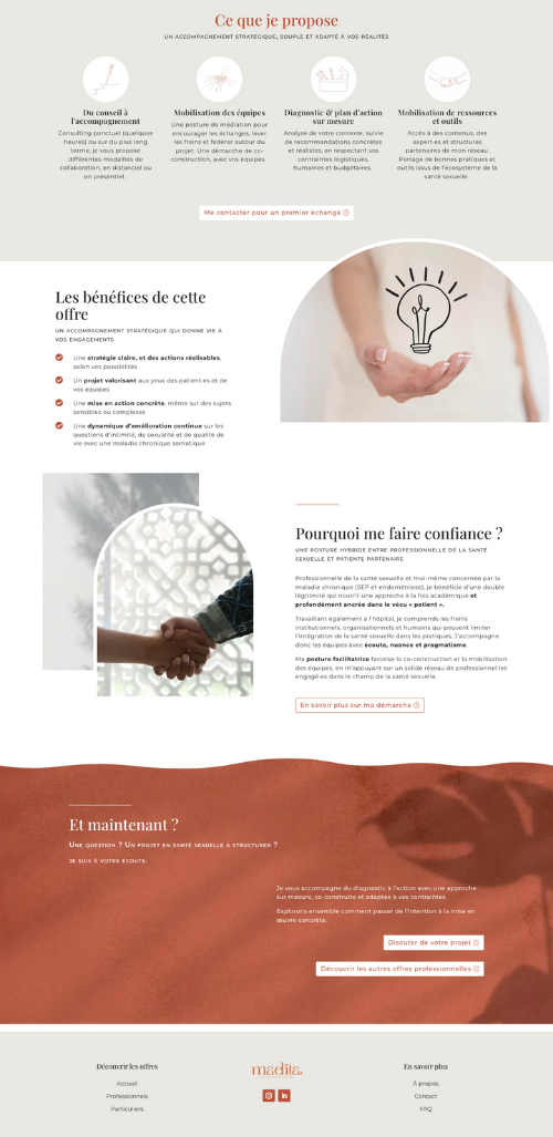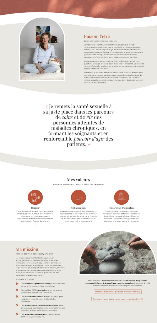 Chloé a été une véritable sauveuse ! Pendant deux ans, j’ai tenté en vain de créer mon site internet, noyée sous les tutoriels YouTube et les conseils bien intentionnés de mes proches. J’ai fini par comprendre qu’imaginer et concevoir un site à son image est un véritable métier.