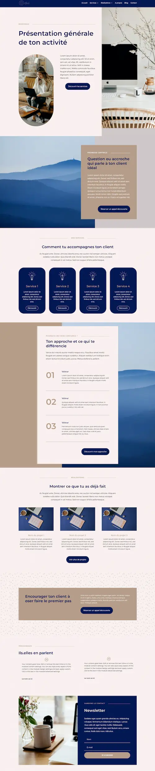 Le thème est un point de départ : il t’offre une base solide, claire et pensée pour convaincre — que ce soit en termes de structure de page, de parcours utilisateur ou de contenus stratégiques.